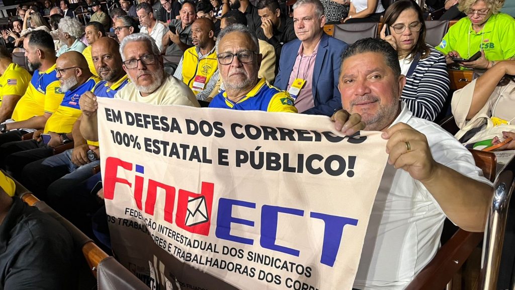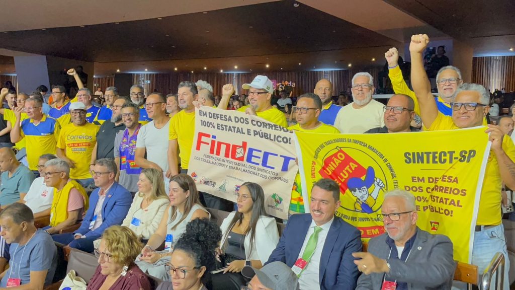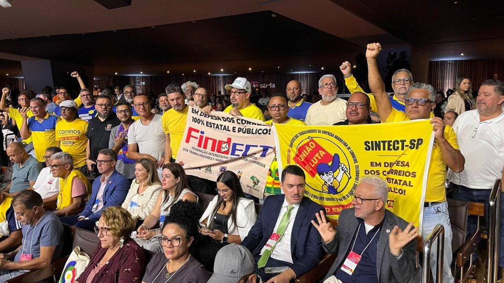 Durante a conferência, os dirigentes sindicais presentes também levantaram bandeiras e entoaram palavras de ordem em defesa dos direitos da categoria e por uma solução para os problemas enfrentados pelos trabalhadores dos Correios. A manifestação destacou a necessidade de diálogo e de respostas concretas às demandas da categoria.