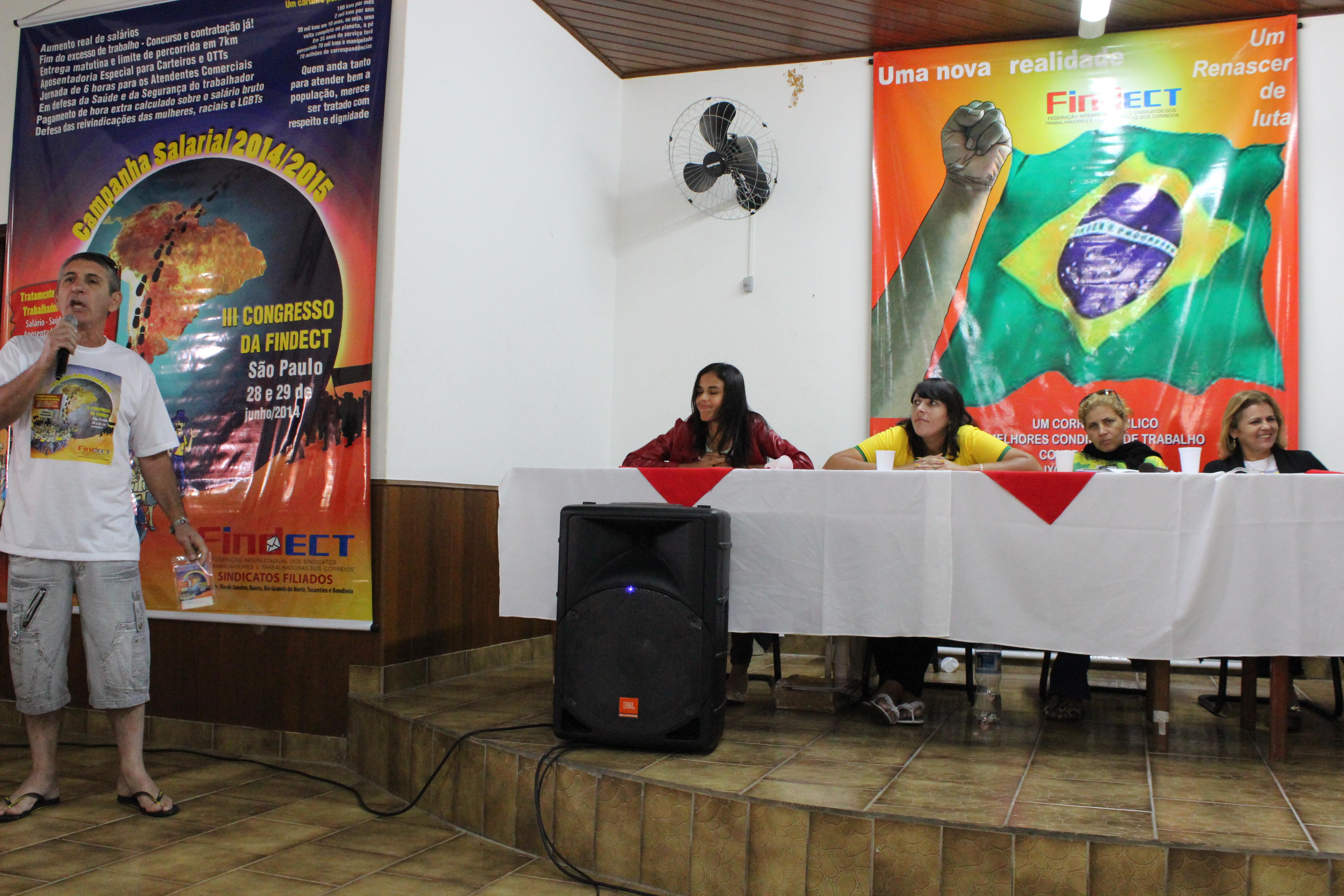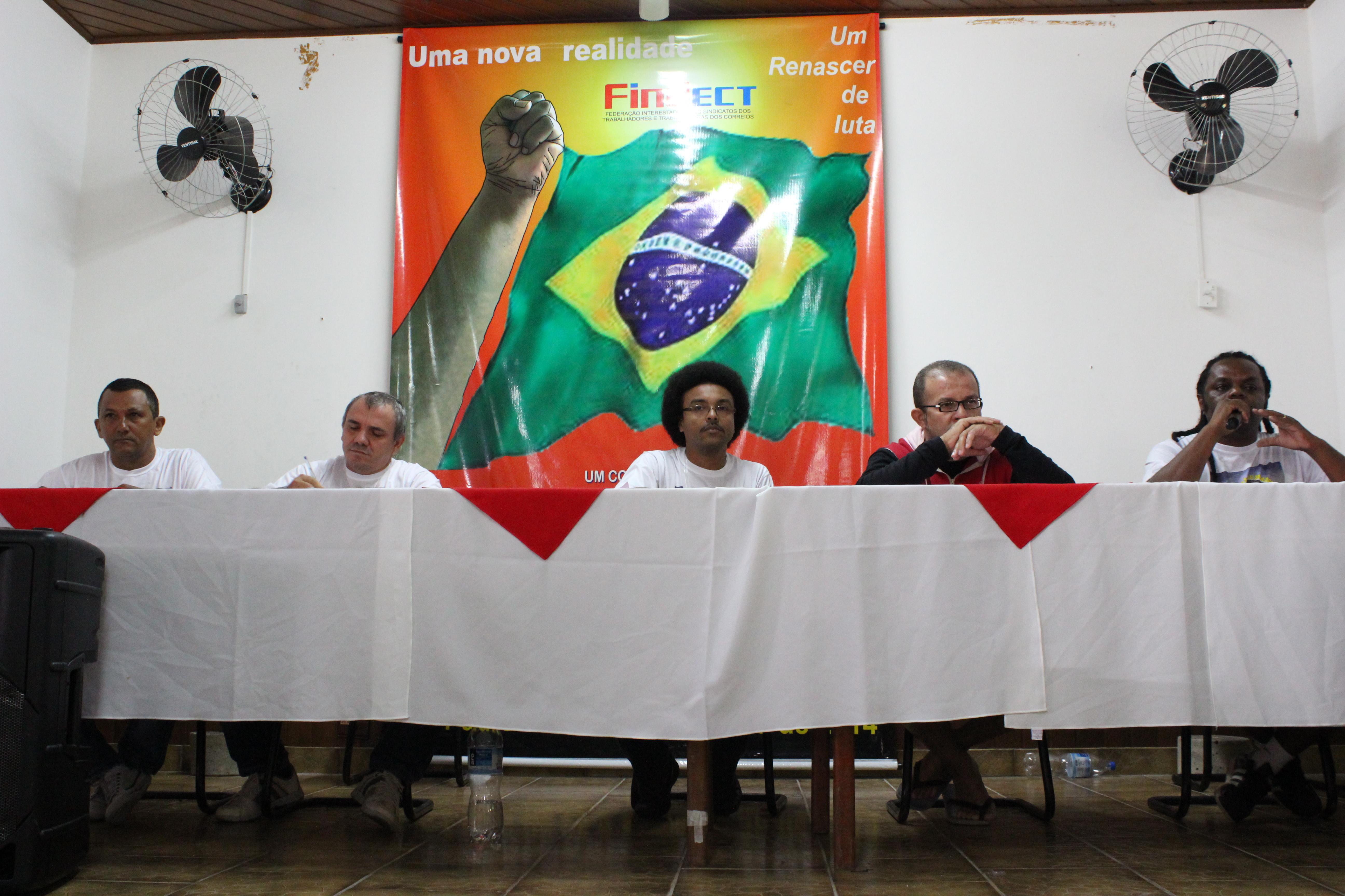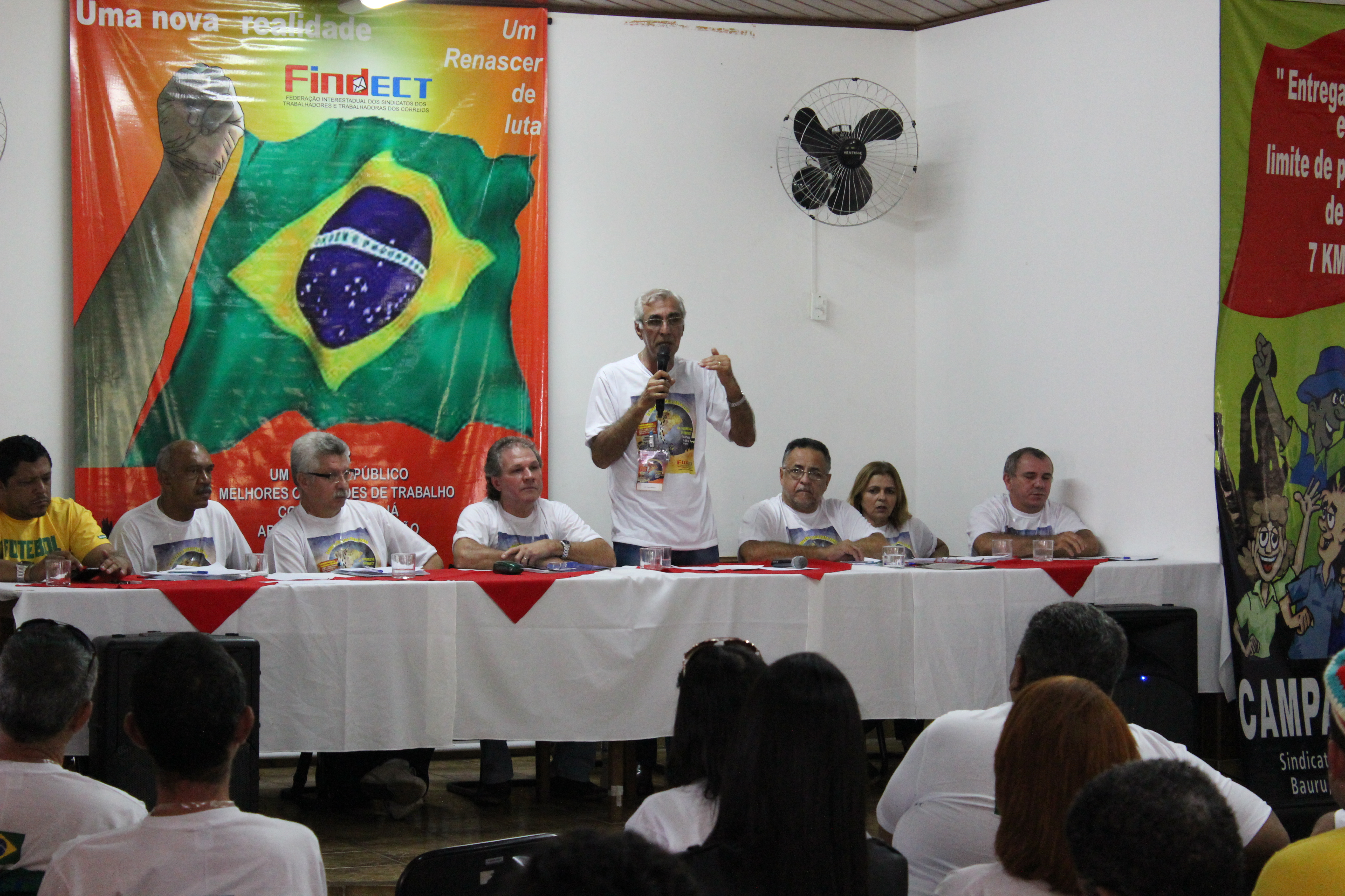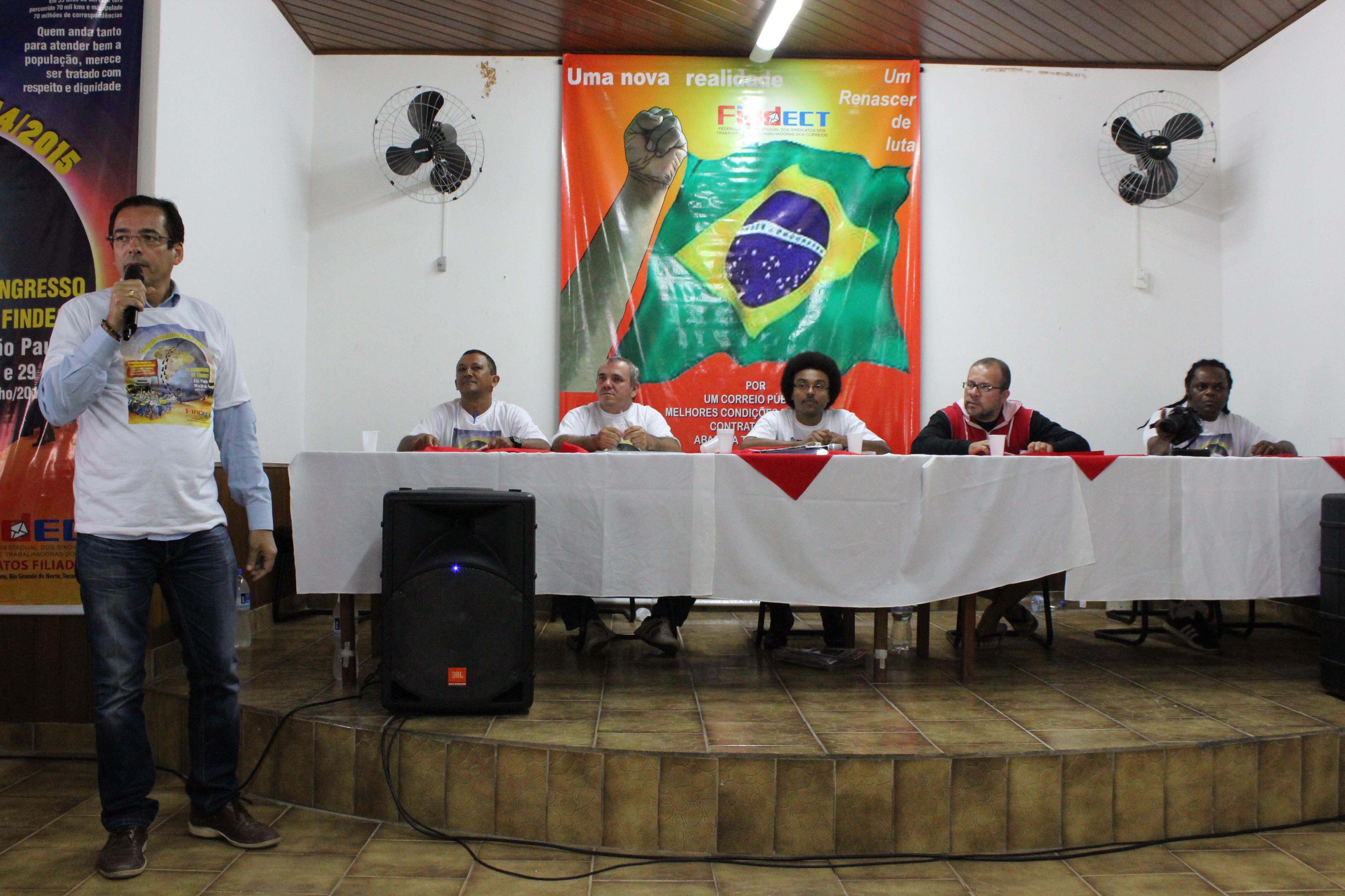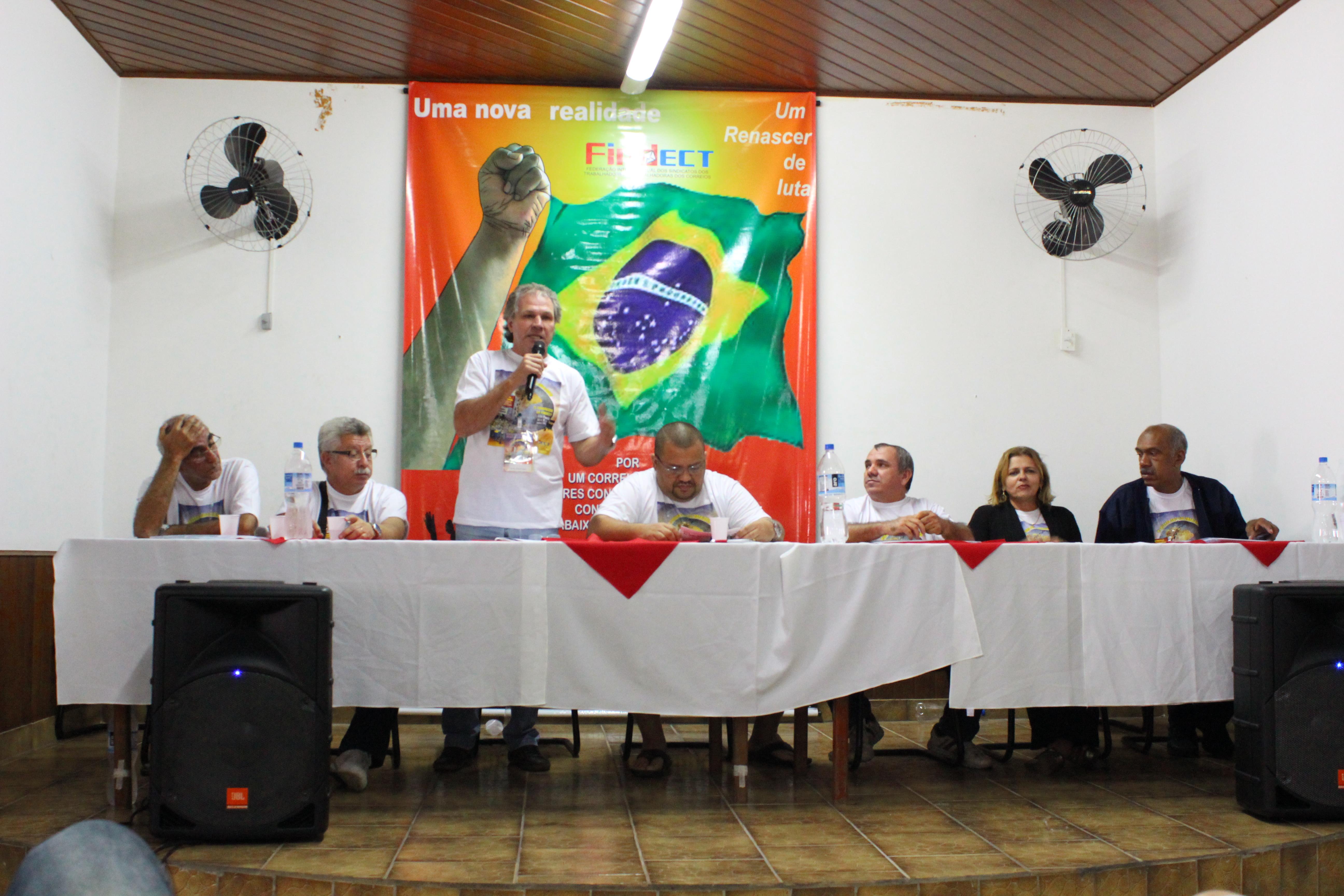 Cada um dos Companheiros da Mesa fez uma fala que, invariavelmente, versou sobre as questões referentes à crise mundial, seus reflexos no país e, as condições dos Correios e dos seus Trabalhadores.