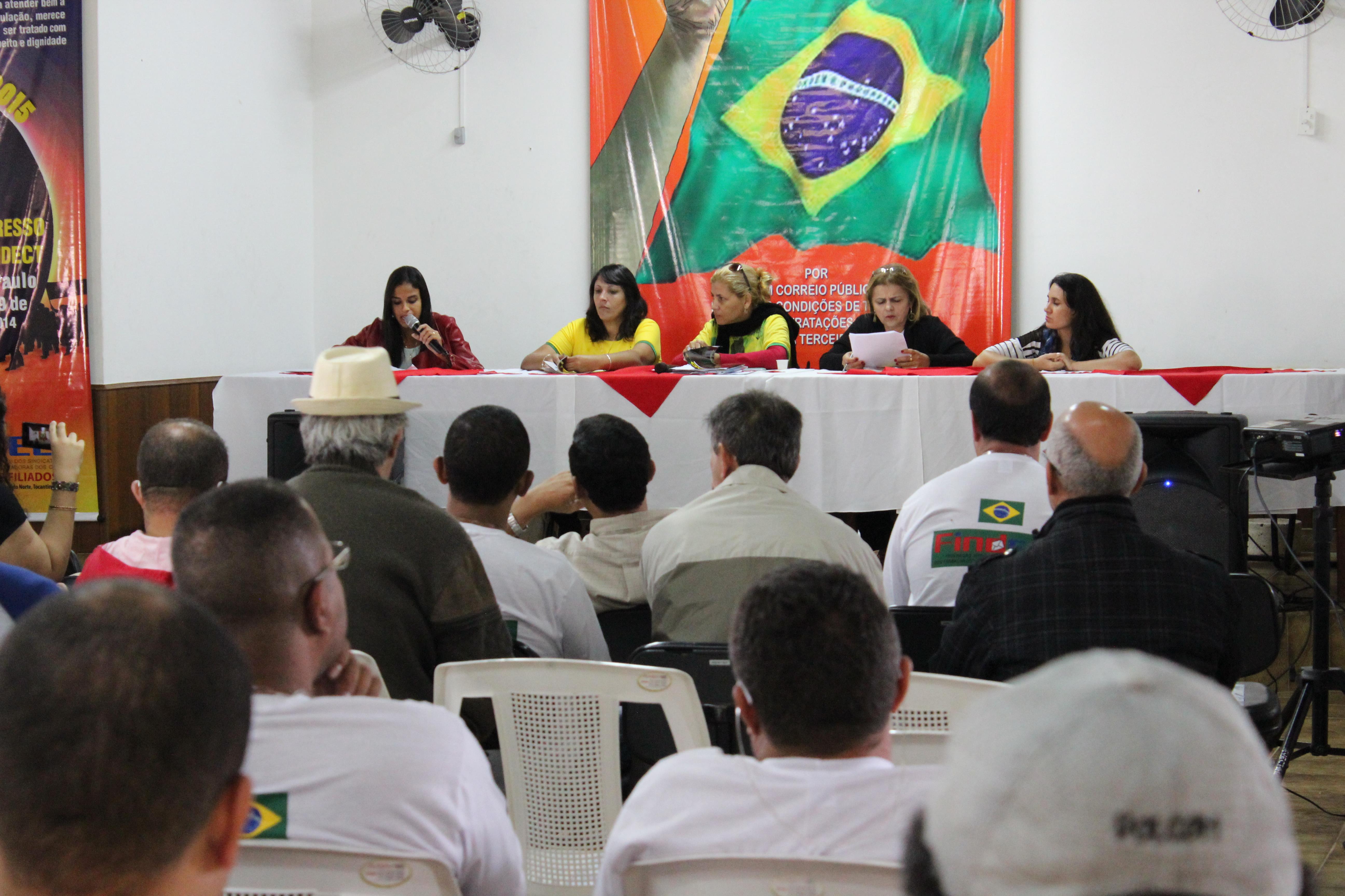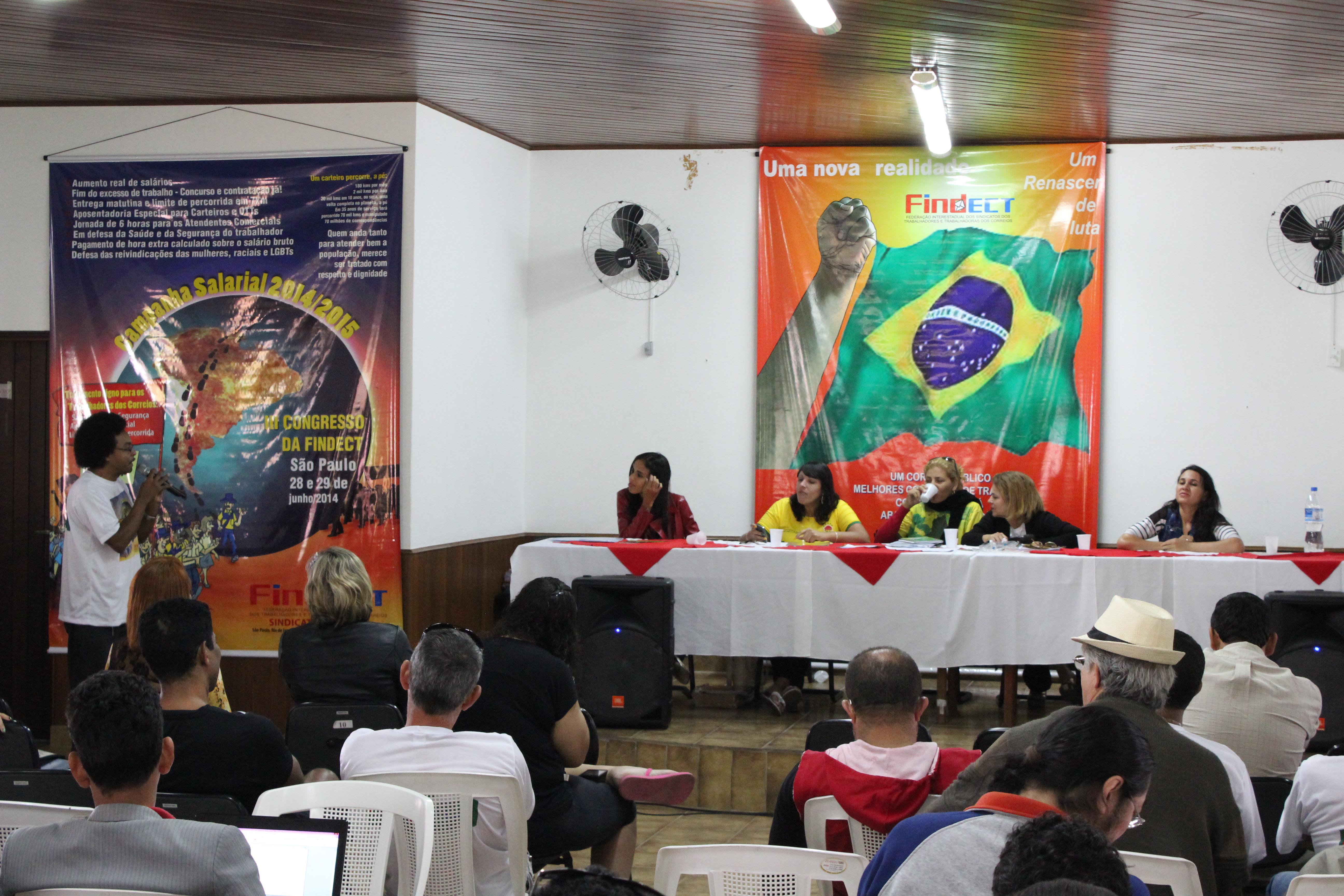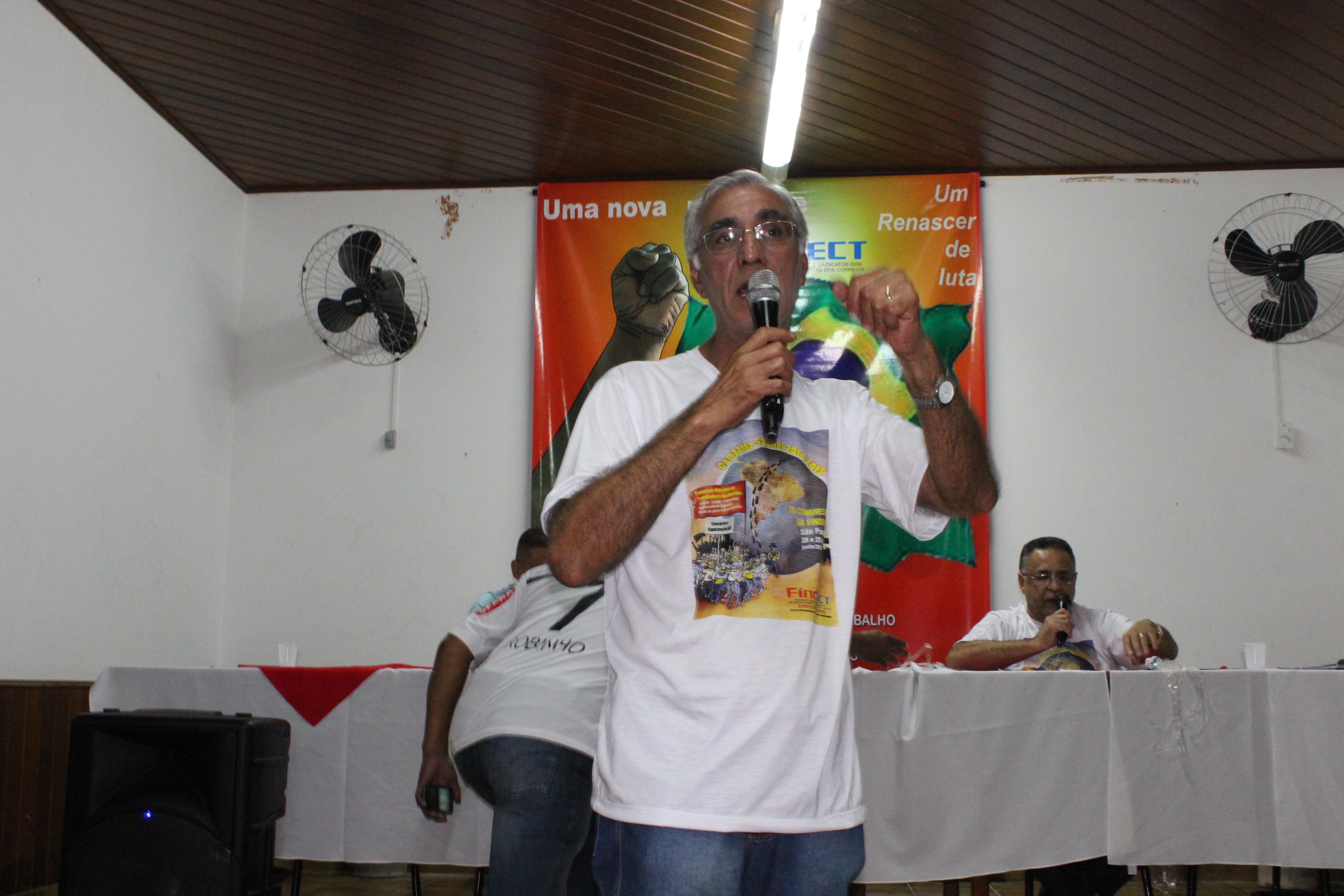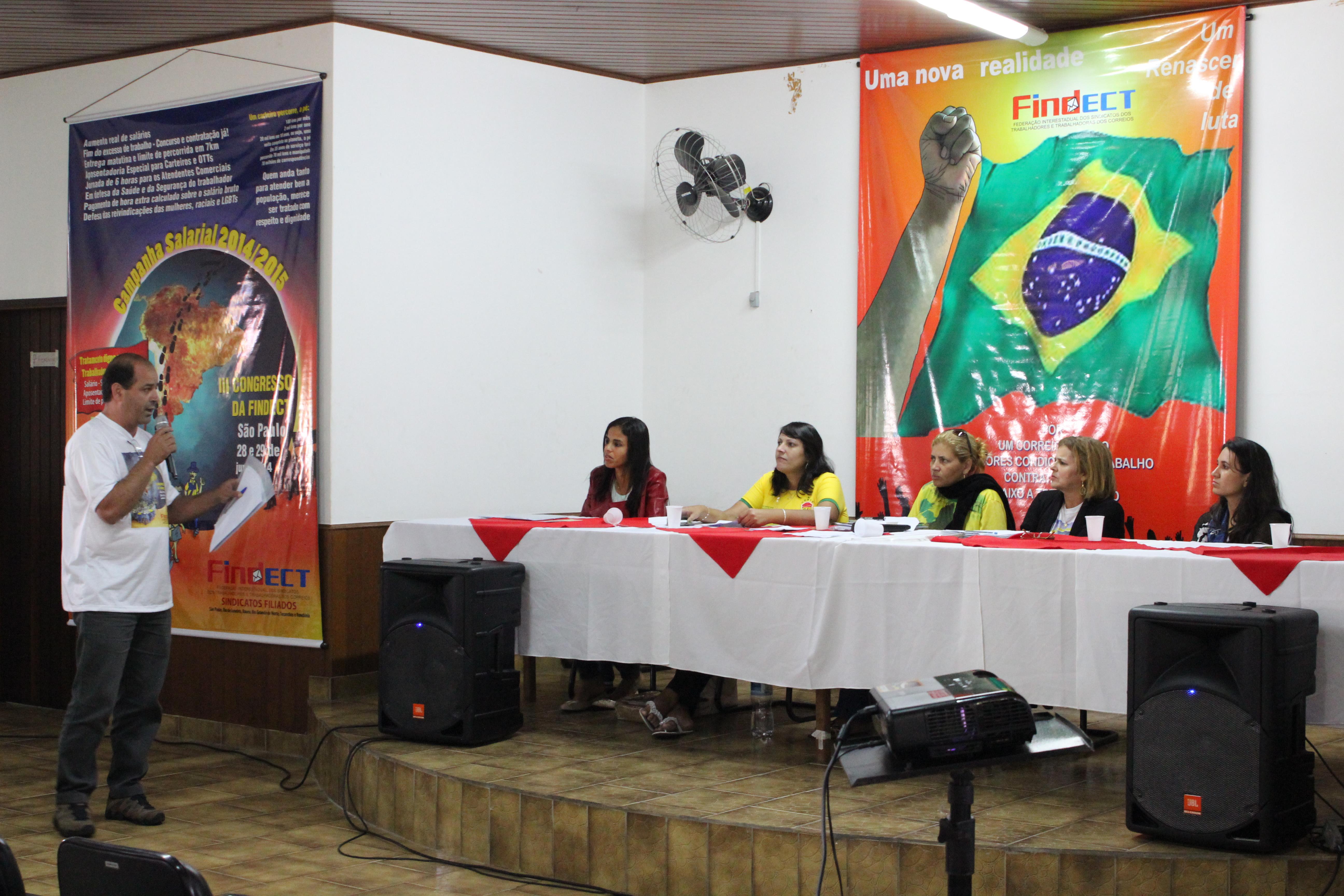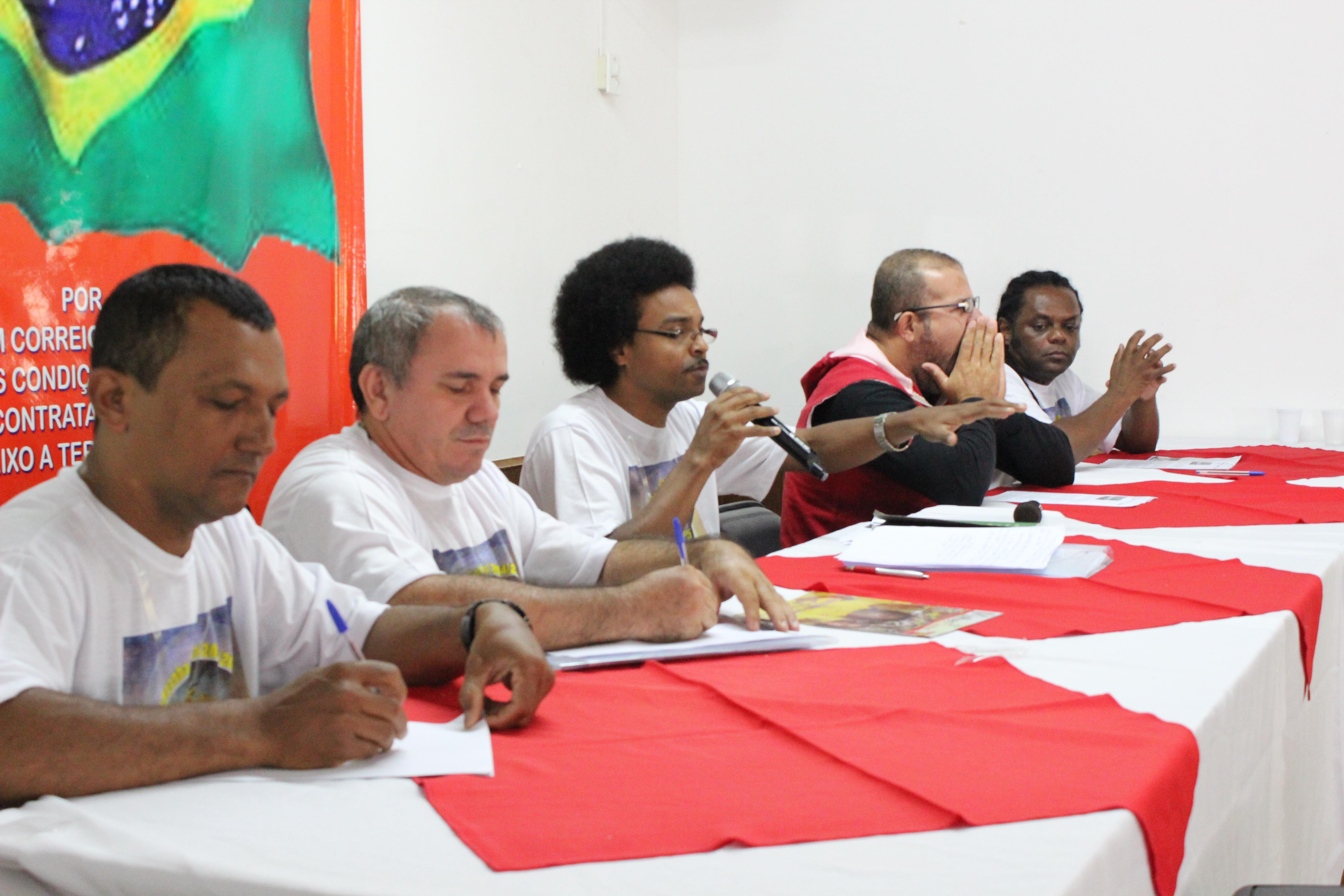 Cada um dos Companheiros da Mesa fez uma fala que, invariavelmente, versou sobre as questões referentes à crise mundial, seus reflexos no país e, as condições dos Correios e dos seus Trabalhadores.
