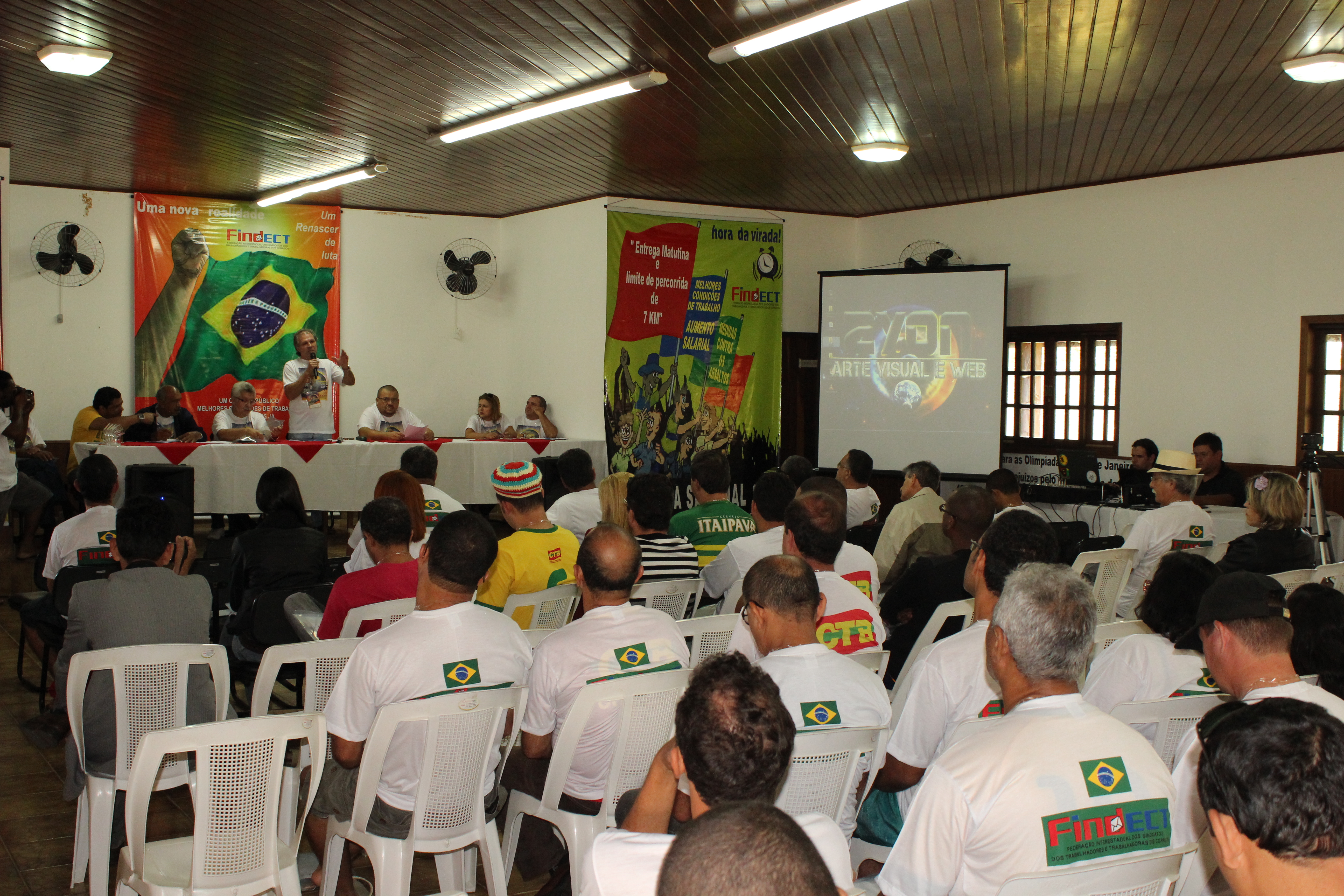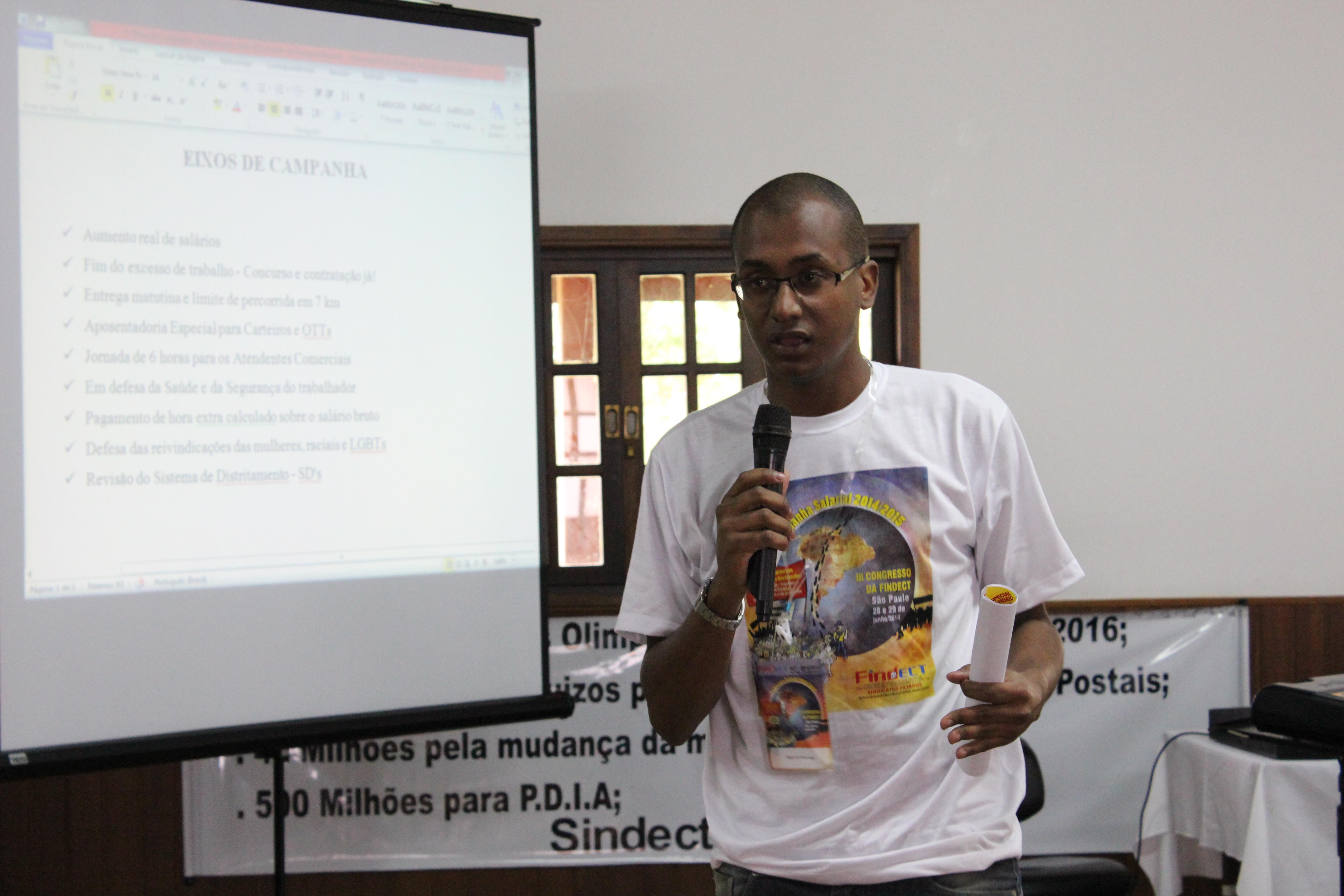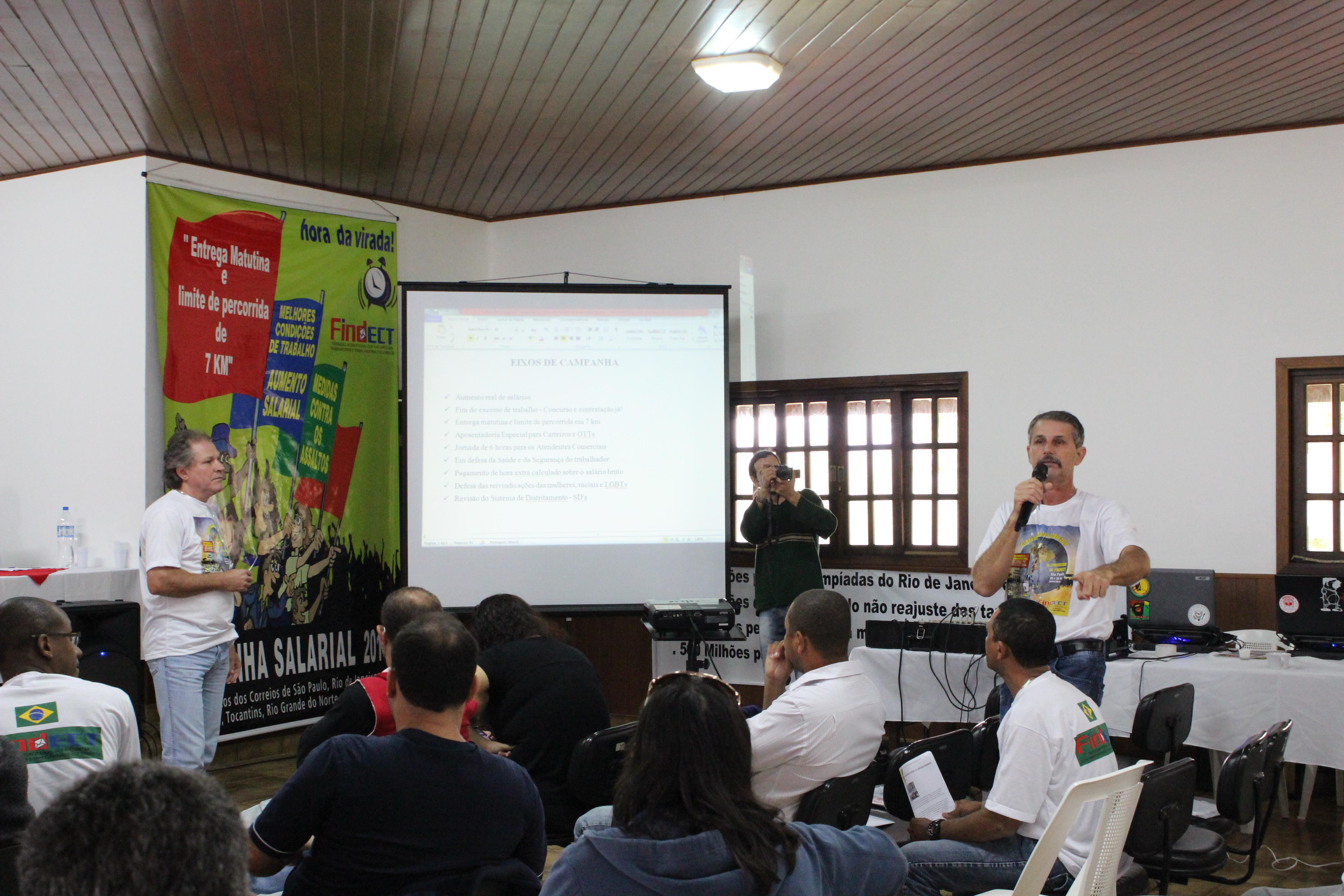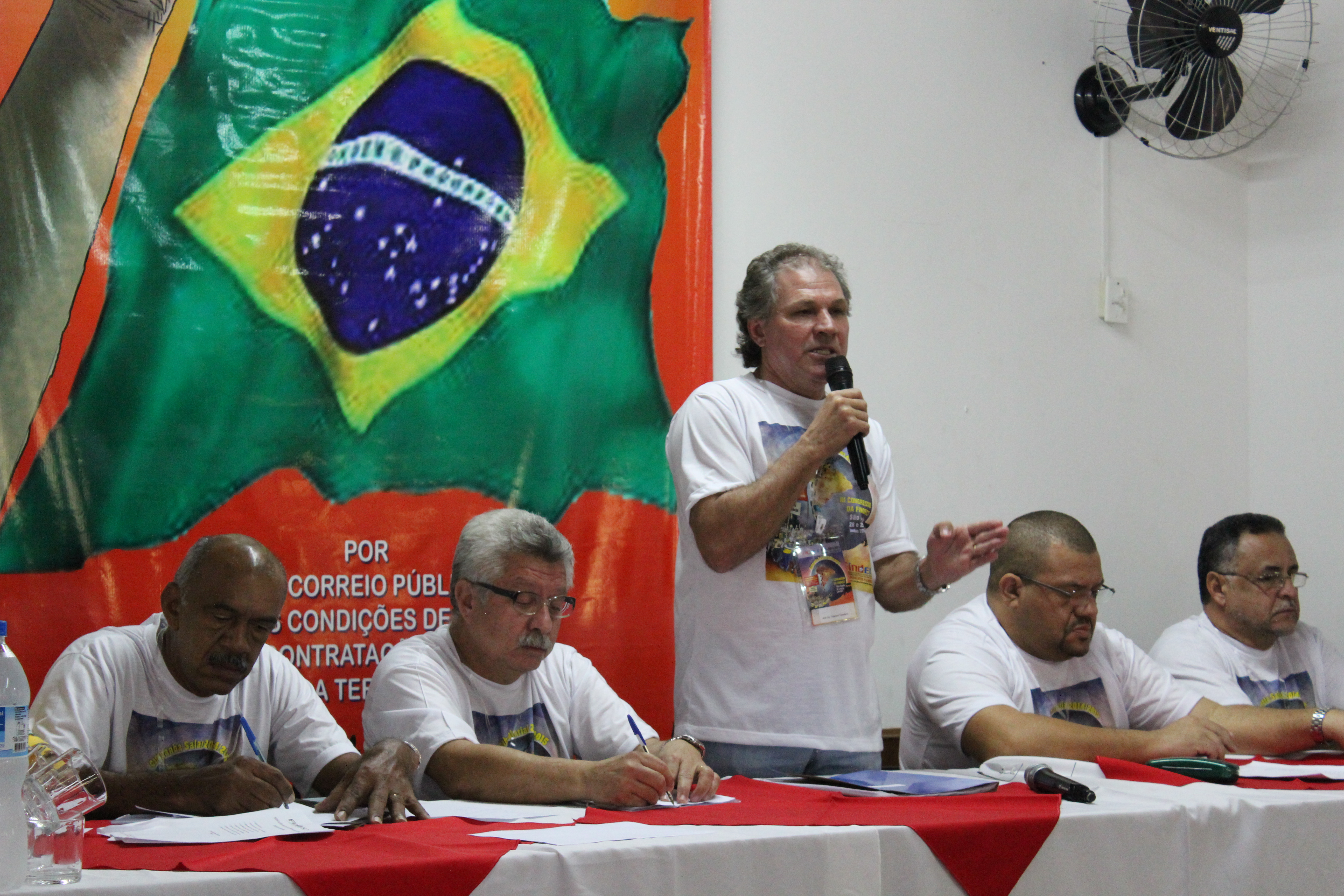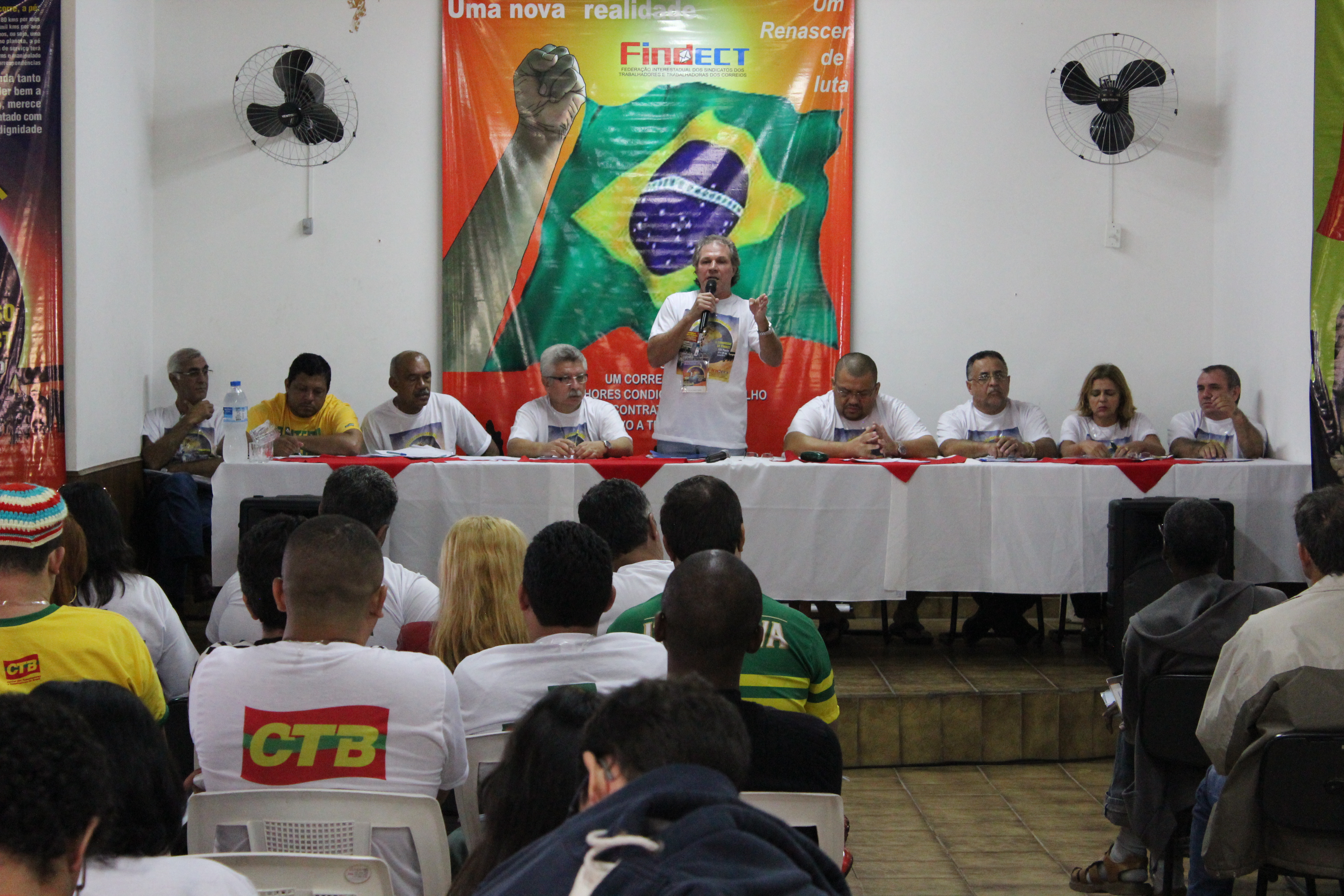 Cada um dos Companheiros da Mesa fez uma fala que, invariavelmente, versou sobre as questões referentes à crise mundial, seus reflexos no país e, as condições dos Correios e dos seus Trabalhadores.