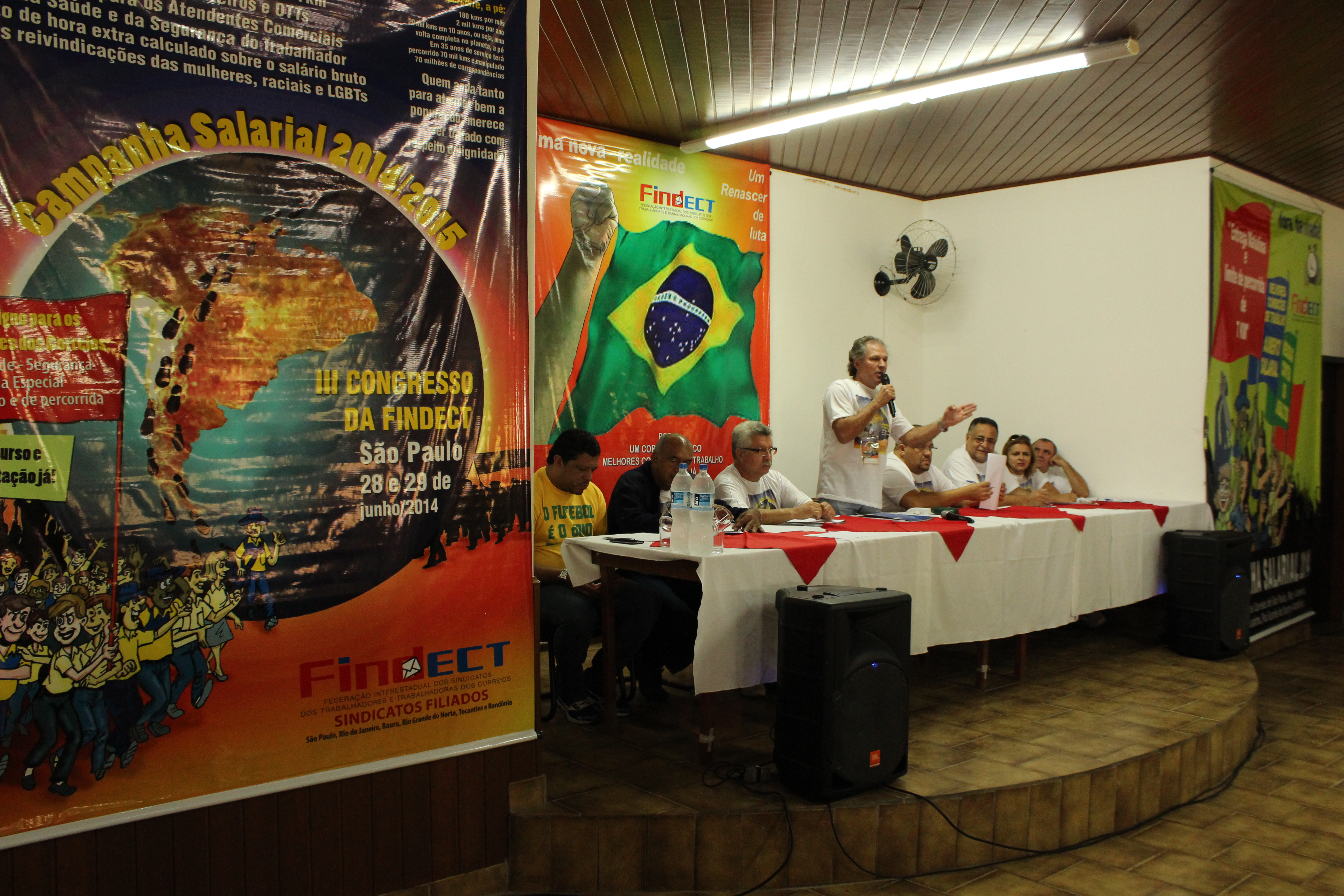 Os trabalhos do III Congresso da FINDECT iniciaram-se no dia 28 de Junho de 2014, com a leitura do edital de convocação pelo Diretor Financeiro Sr. Anézio Rodrigues. Logo após foi montada a mesa de abertura do qual fizeram parte o Presidente da FINDECT – Sr. José Aparecido Gimenes Gandara- e um representante de cada um dos Sindicatos que compõem a Federação: São Paulo – Elias Cesário de Brito Junior (Diviza) – , Rio de Janeiro – Anízio – , Bauru – Luiz Alberto Bataiola, Tocantins – Telma Milhomen, Rondônia – Antunes – e Rio Grande do Norte – Sr. Renato. Também participou da mesa, como convidado, o Presidente da CTB Nacional – Sr. Adilson Araujo.