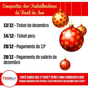 É bom ressaltar, que está chegando a data de a categoria receber o benefício, creditado no cartão do ticket alimentação/refeição, e ele representa um reconhecimento do trabalho árduo e exaustivo desempenhado pelos Ecetistas durante o ano. Essa conquista representa a importância da luta e da união dos Ecetistas, e trabalho sério dos representantes sindicais na história dos Trabalhadores.
